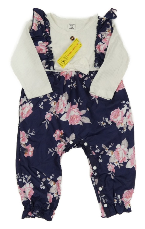Nové - Bílo-tmavomodrý overal s květinami Shein