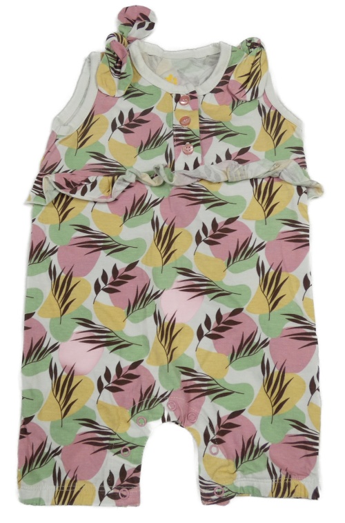 Bílo-růžovo-barevný vzorovaný kraťasový overal