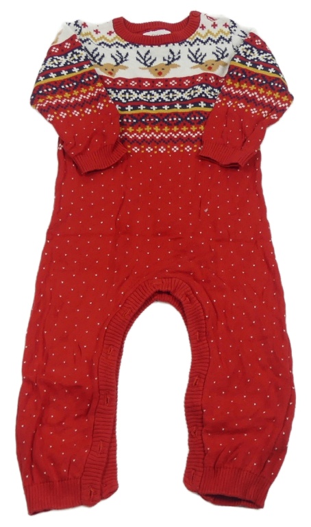 Červeno-bílý vzorovaný pletený overal se soby F&F