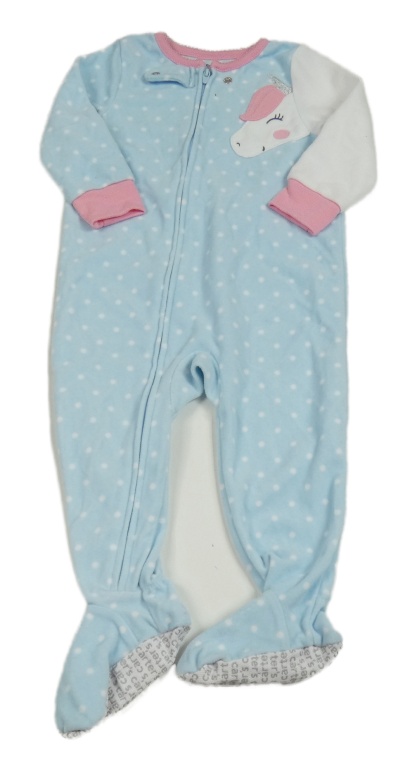 Světlemodro-bílý fleecový overal s puntíky a jednorožcem Carter's