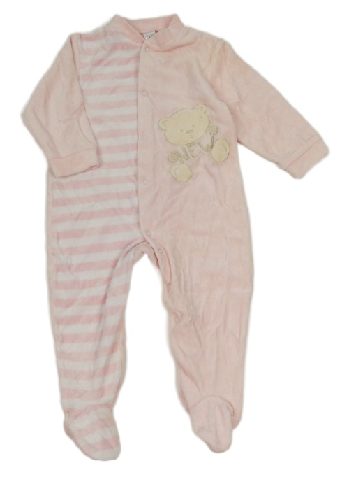 Světlerůžovo-bílý sametový overal s medvídkem a pruhy C&A