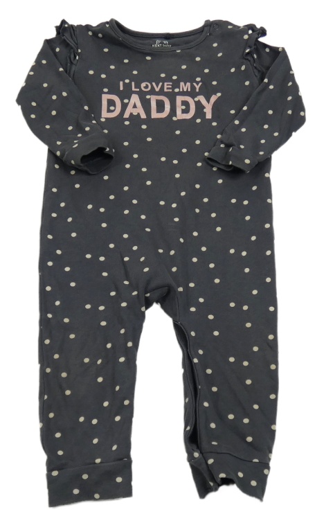 Šedý puntíkatý overal s nápisem Next