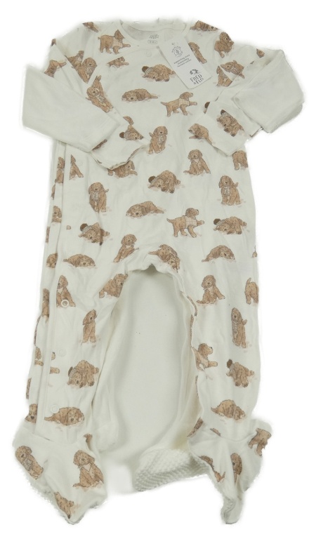 • Nové - 2x - Bílý overal - Bílý bavlněný s pejsky, sametový s pejskem F&F
