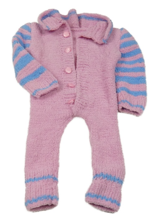 Růžovo-modrý plyšový overal s límečkem