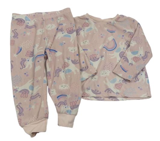 Světlerůžové plyšové pyžamo s jednorožci a duhami