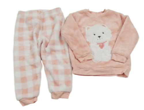 Broskvovo-kostkované chlupaté pyžamo s pejskem Blukids