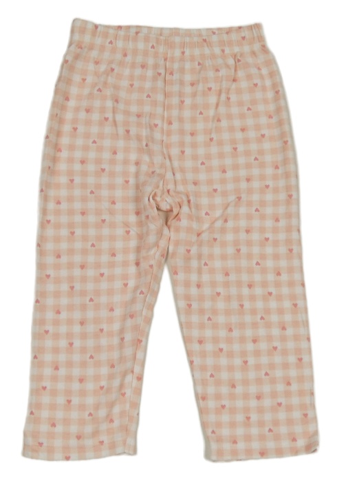 Bílo-růžové kostkované pyžamové kalhoty s srdíčky
