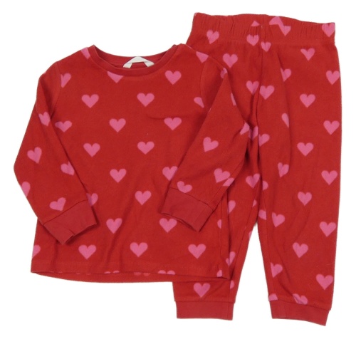 Červené fleecové pyžamo se srdíčky M&S