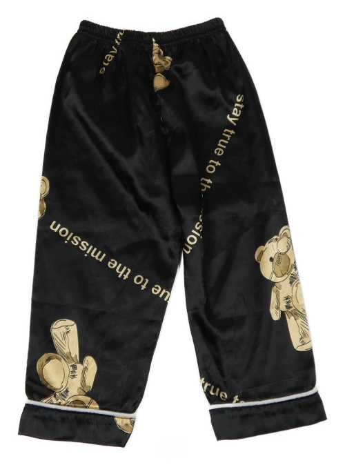 Černé saténové pyžamové kalhoty s medvědy Shein