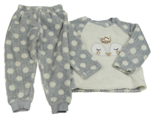 Bílo-šedé chlupaté pyžamo se sovou a puntíky Nutmeg