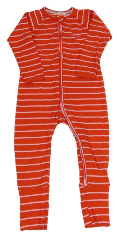 Červeno-světlerůžový pruhovaný žebrovaný overal s nápisem