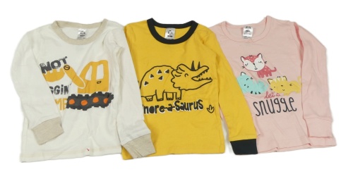 • 3x - Pyžamové triko - Bílo/světlebéžové s buldozerem, tmavožluto/černé s dinosaurem, světlerůžové se zvířátky Gerber