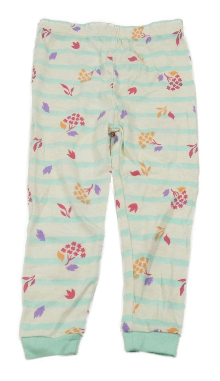 Nové - Smetanovo-zelené pruhované květované pyžamové kalhoty
