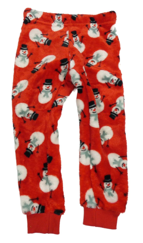 Červené chlupaté pyžamové kalhoty se sněhuláky