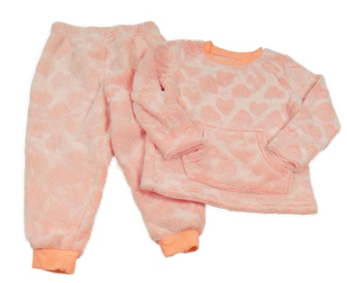 Neonově růžové chlupaté pyžamo se srdíčky Nutmeg