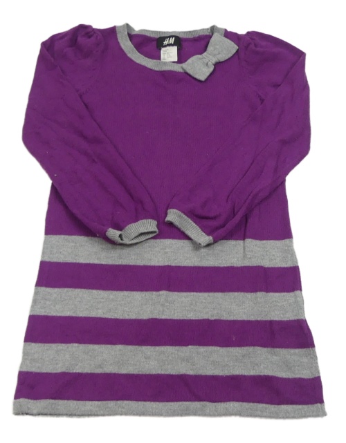 Fialovo-šedé pletené šaty s mašlí a pruhy H&M