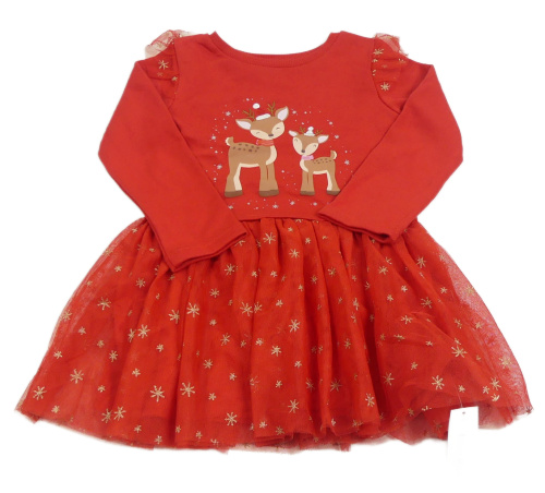 Nové - Červené teplákovo/tylové šaty se soby a vločkami Dunnes stores