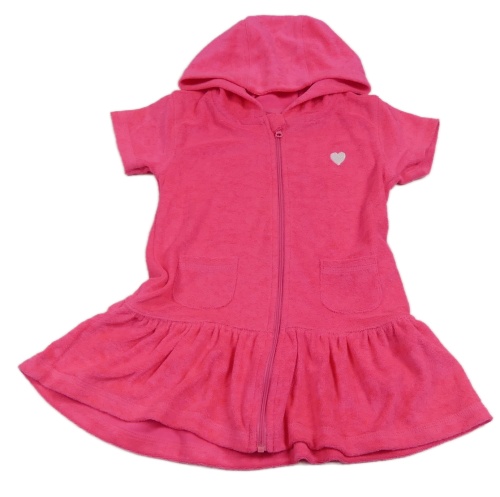 Neonově růžové froté propínací šaty se srdíčkem a kapucí