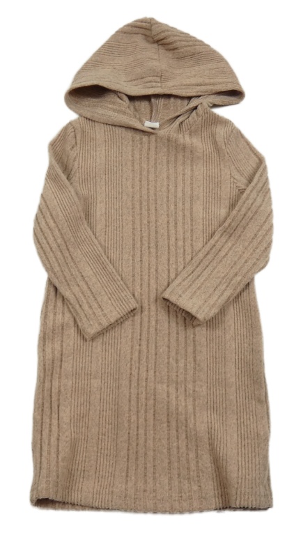 Starorůžové žebrované úpletové šaty s kapucí Shein