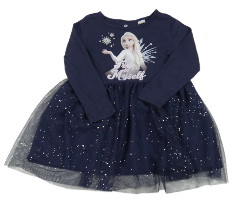 Tmavomodré bavlněno/tylové šaty s Elsou Disney