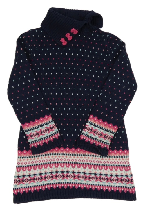 Tmavomodro-růžové vzorované svetrové šaty s rolákem
