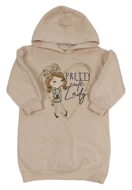 Světlerůžové teplákové šaty s holčičkou a kapucí C&A