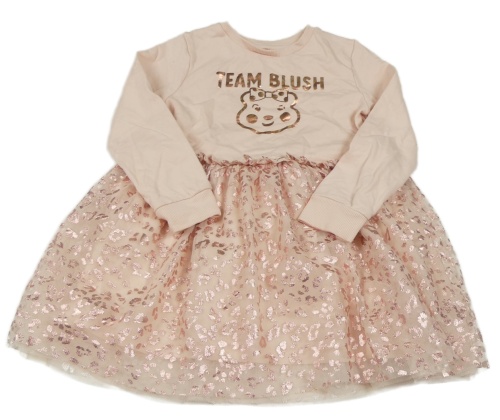 Světlepudrové teplákovo/tylové šaty s medvídkem Blush a vzorem George