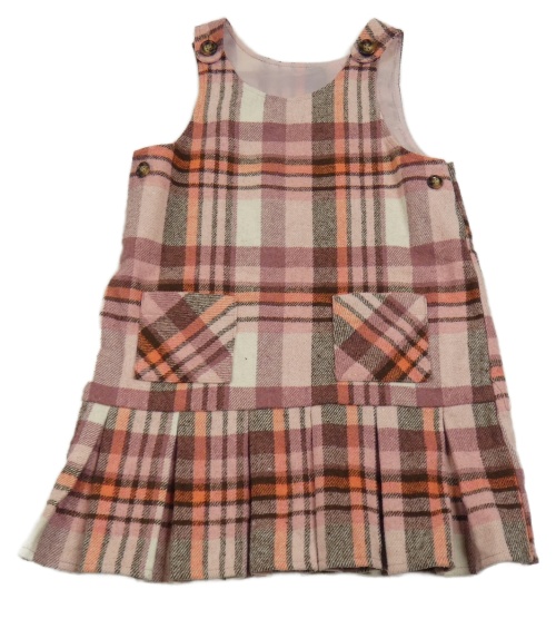 Růžovo-smetanovo-hnědé kostkované laclové vlněné šaty Matalan