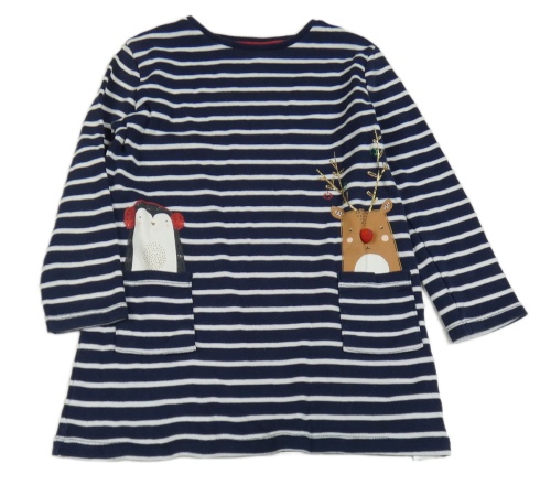 Tmavomodro-bílé pruhované šaty se sobem a tučňákem F&F