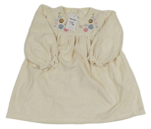 Nové - Světlebéžové žebrované šaty s výšivkami květů