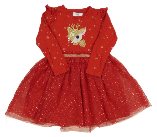 Červené šaty se sobem s flitry a zlatými hvězdičkami a volánky a tylem s puntíky PRIMARK