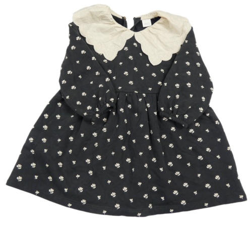 Tmavošedé teplákové květované šaty s límcem