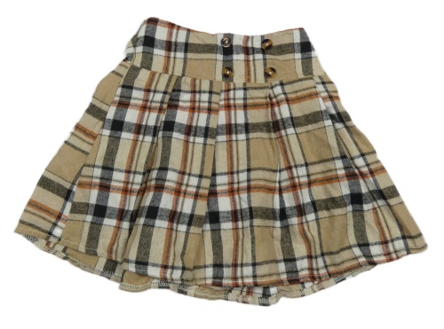 Hnědo-černo-bílá kostkovaná sukně s knoflíky
