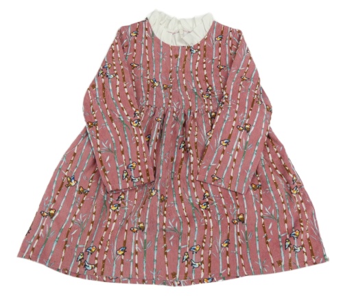 Růžovo-barevné pruhované žebrované šaty s ptáčky