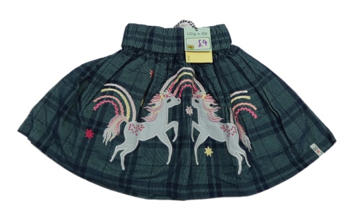 Nové - Tmavomodro-zelená kostkovaná kolová sukně s jednorožci Lily + Sid