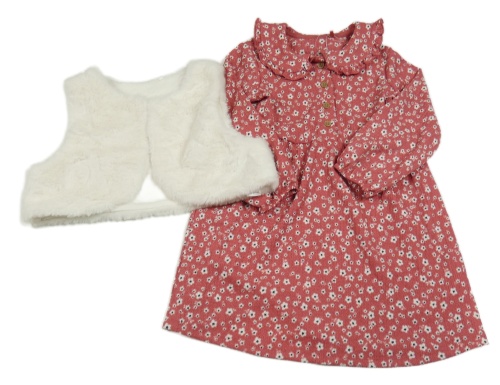 • Nové - 2set - Vínové květované šaty s límečkem + smetanová kožešinová podšitá vesta Nutmeg