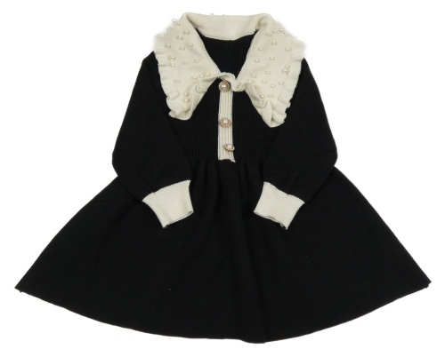 Černo-bílé úpletové šaty s gombíky a límečkem s perlami