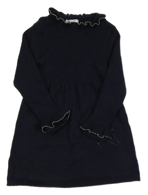 Tmavomodré úpletové šaty se žebrováním a volánky PRIMARK