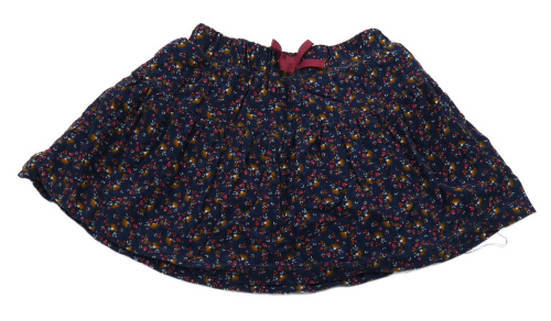 Tmavomodrá manšestrová sukně s kytičkami a mašlí OKaïdi