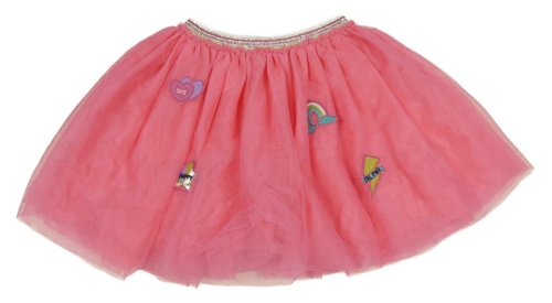Růžová tylová sukně s našitými obrázky a stříbrným pasem s pruhy Matalan