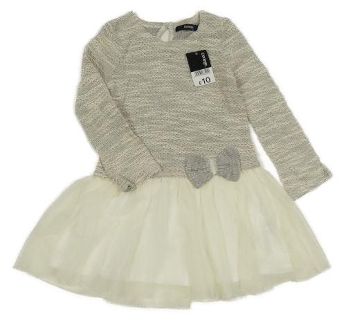 Nové - Šedo-smetanové teplákovo/tylové šaty s mašlí George