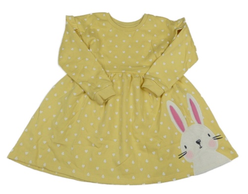 Žluté teplákové šaty se zajíčkem a srdíčky a volánky St. Bernard