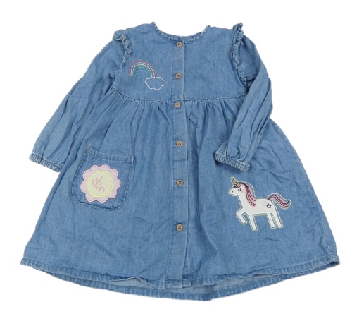 Světlemodré riflové propínací šaty s jednorožcem a duhou F&F