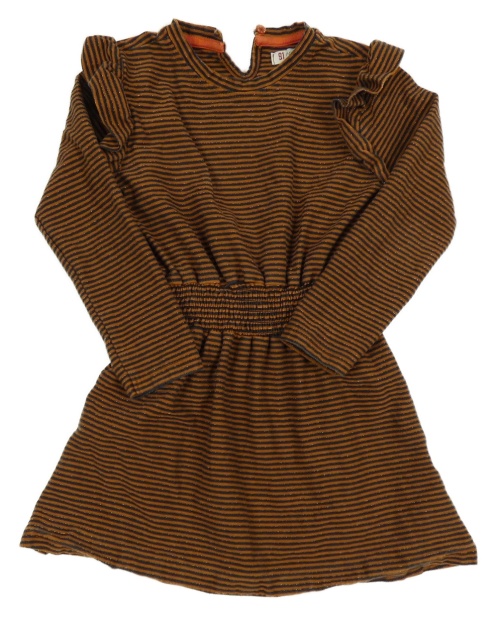 Hnědo-tmavošedé pruhované šaty s volánky Noppies