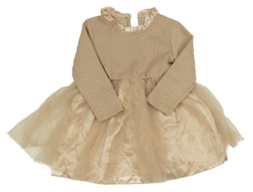 Béžovo-pudrové úpletovo/saténové šaty se vzorem a tylem SHEIN