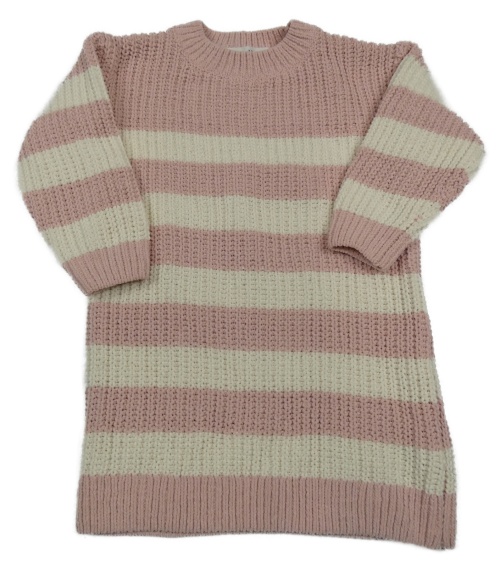 Světlerůžovo-smetanové pruhované žebrované žinylkové svetrové šaty H&M