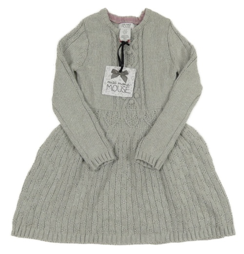 Nové - šedo-stříbrné melírované svetrové šaty s bambulkami miss mona MOUSE