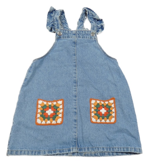 Světlemodré laclové riflové šaty s háčkovanými kapsami Matalan