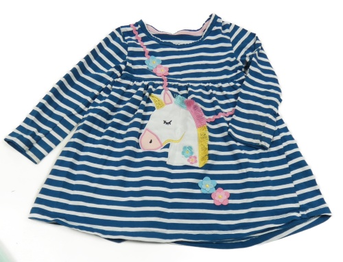 Petrolejovo-bílé pruhované šaty s jednorožcem