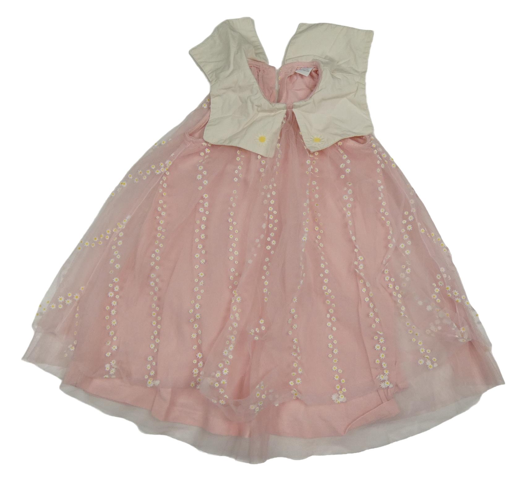 Růžové tylové šaty s květinami a límečkem LC Waikiki